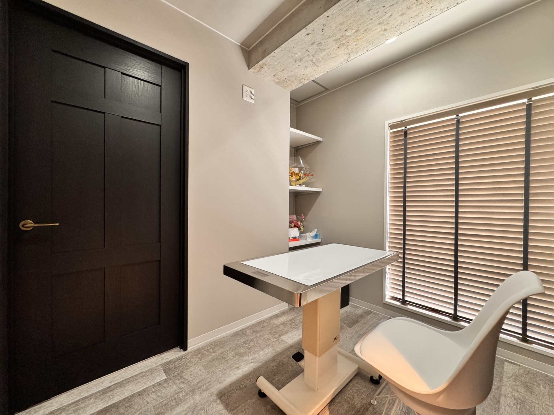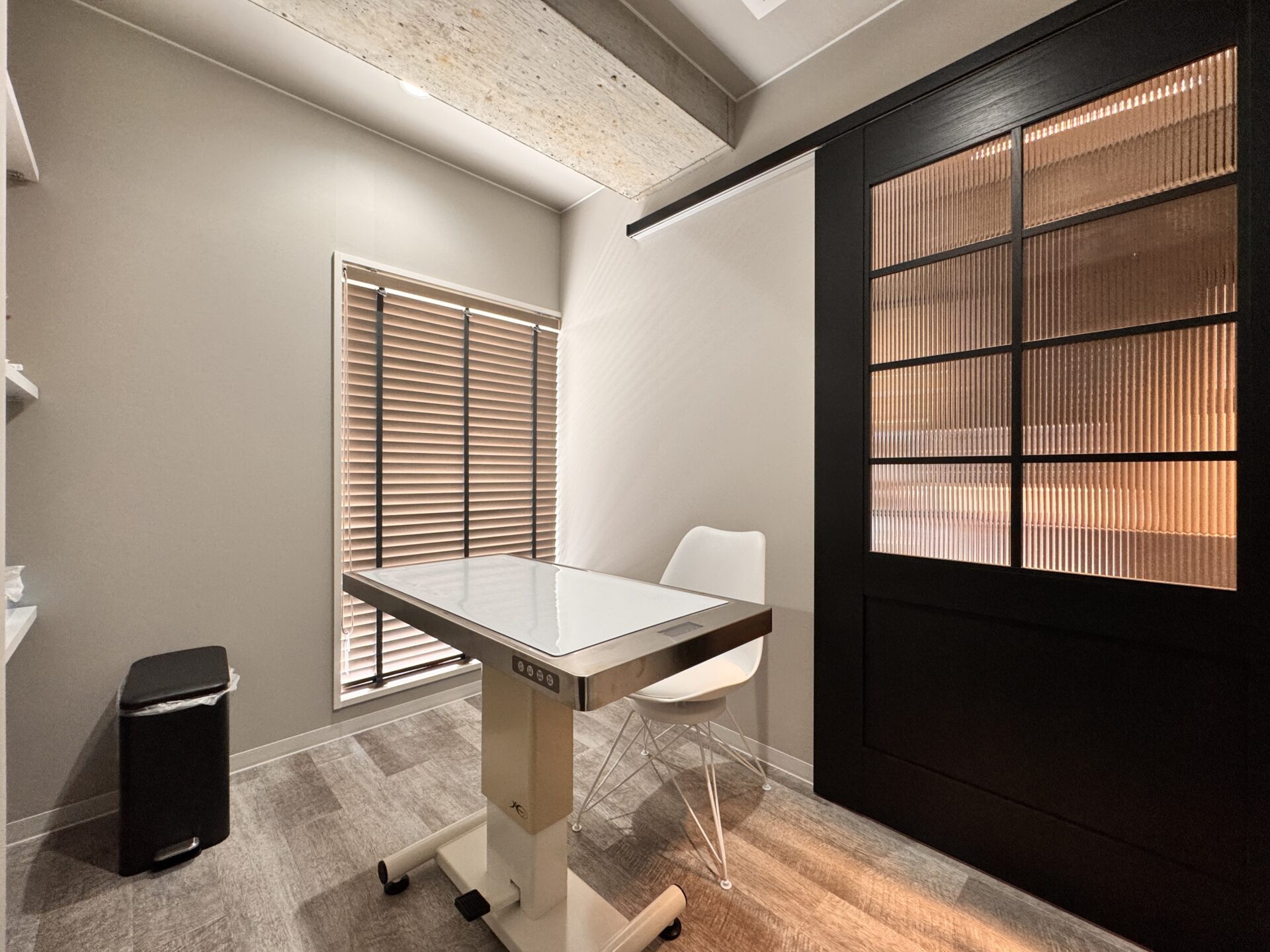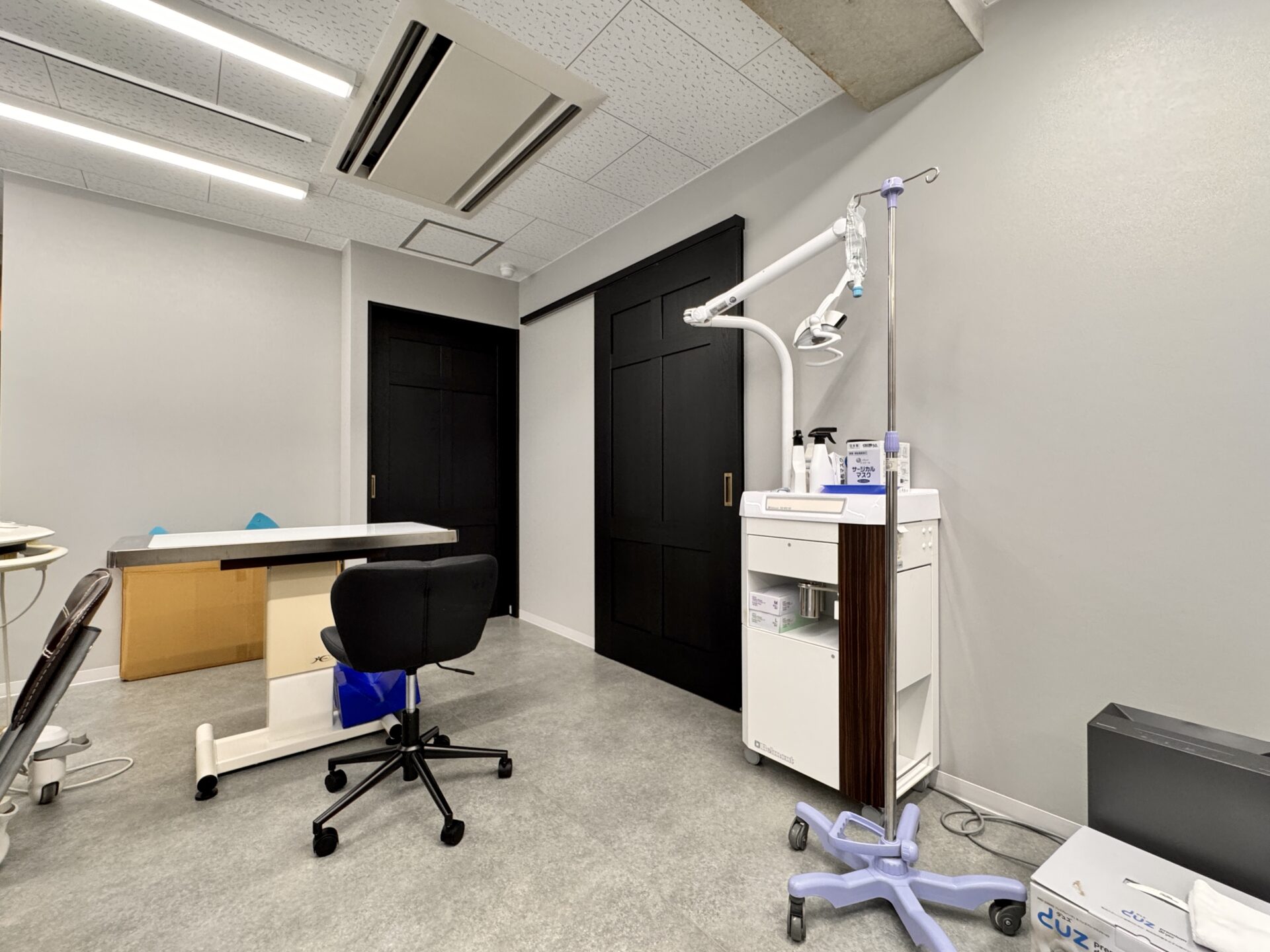 処置室全体の床・壁紙は耐薬品性があり、汚れに強いものを使っています。