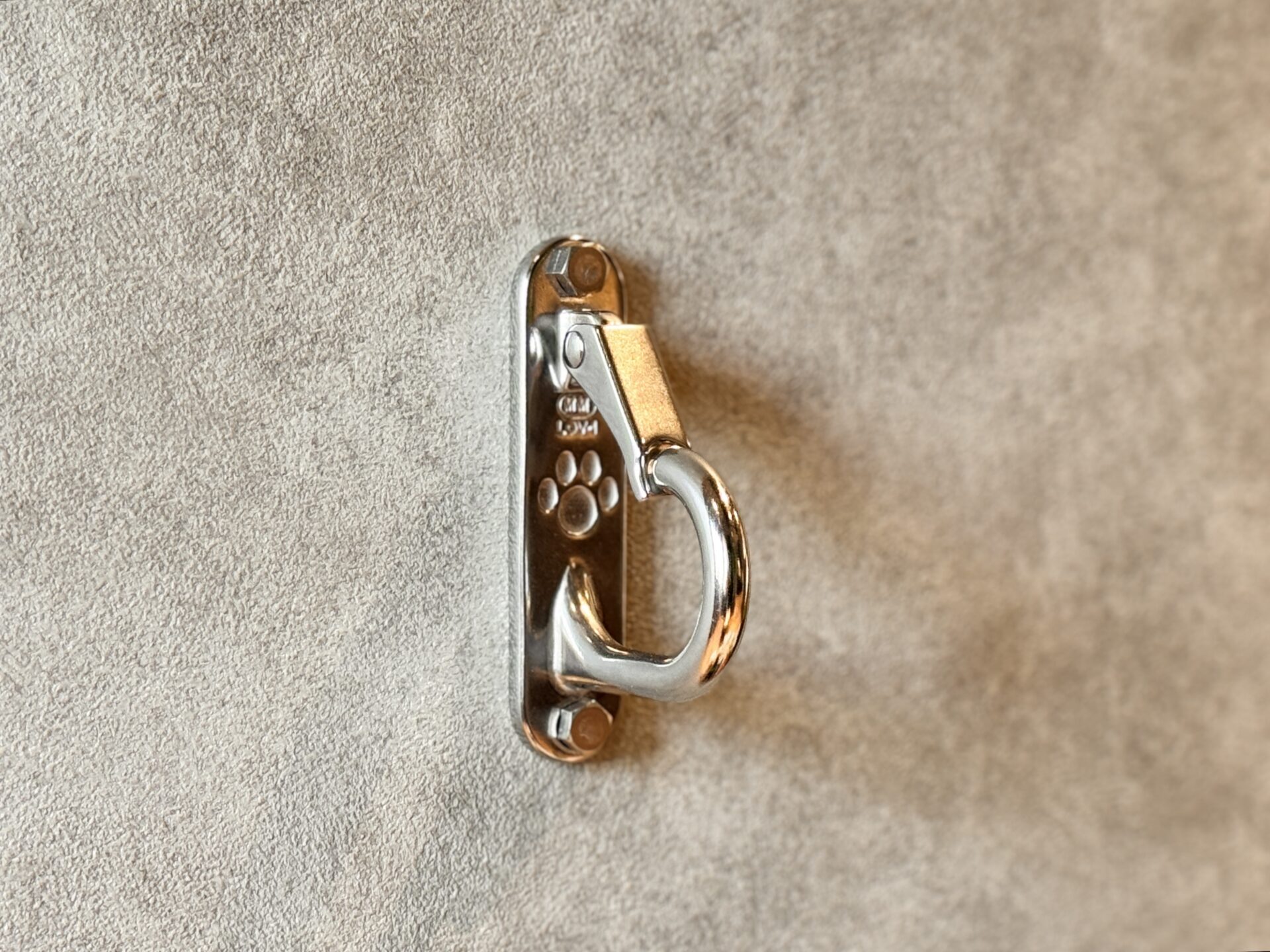 壁の左下部にはワンちゃん用のリードフックを設置しています。