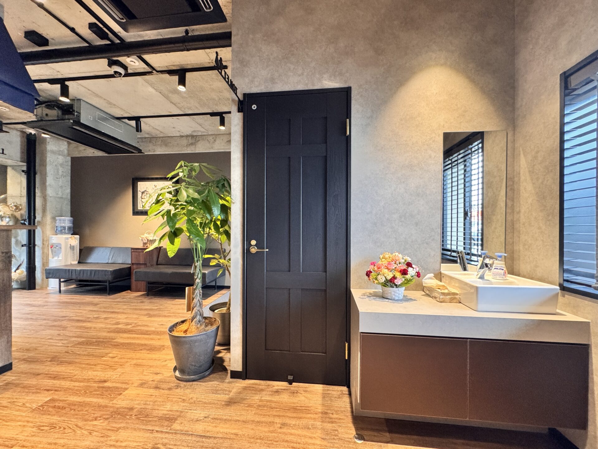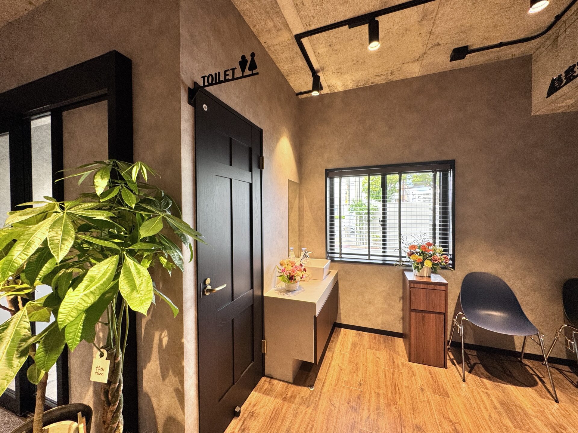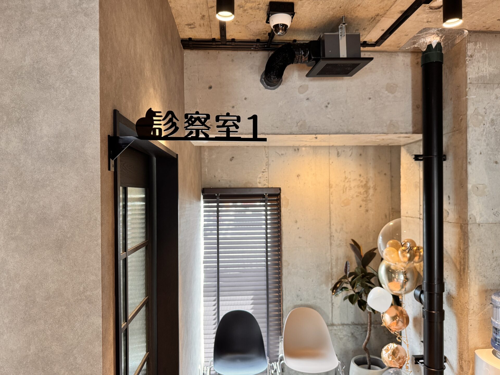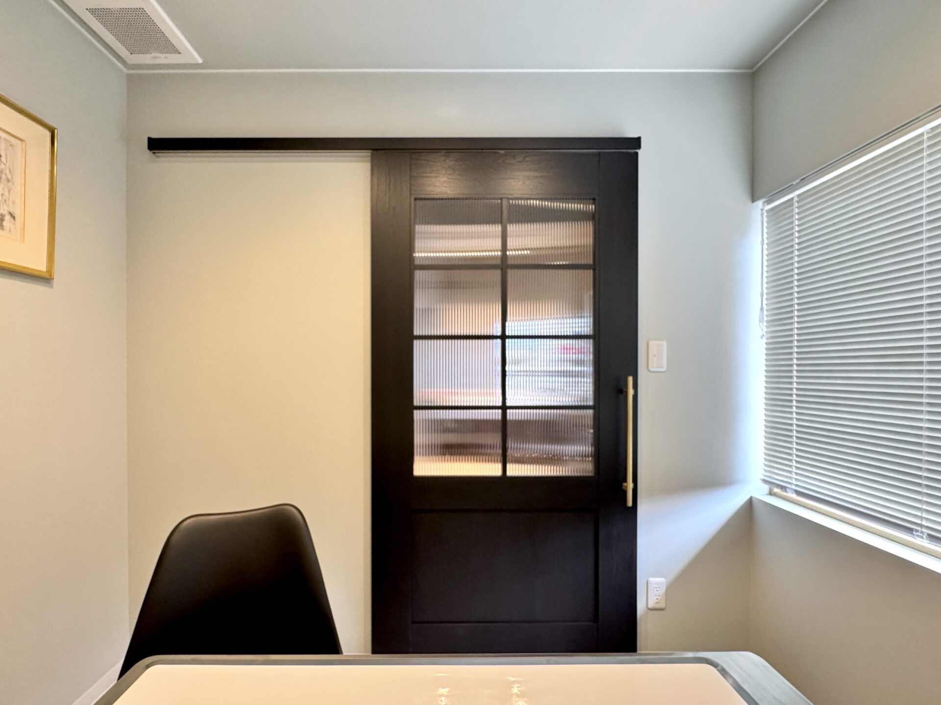 診察室の扉はブラック色の框戸になっており、ウェイティングの空間引き締めるオシャレなデザインです。