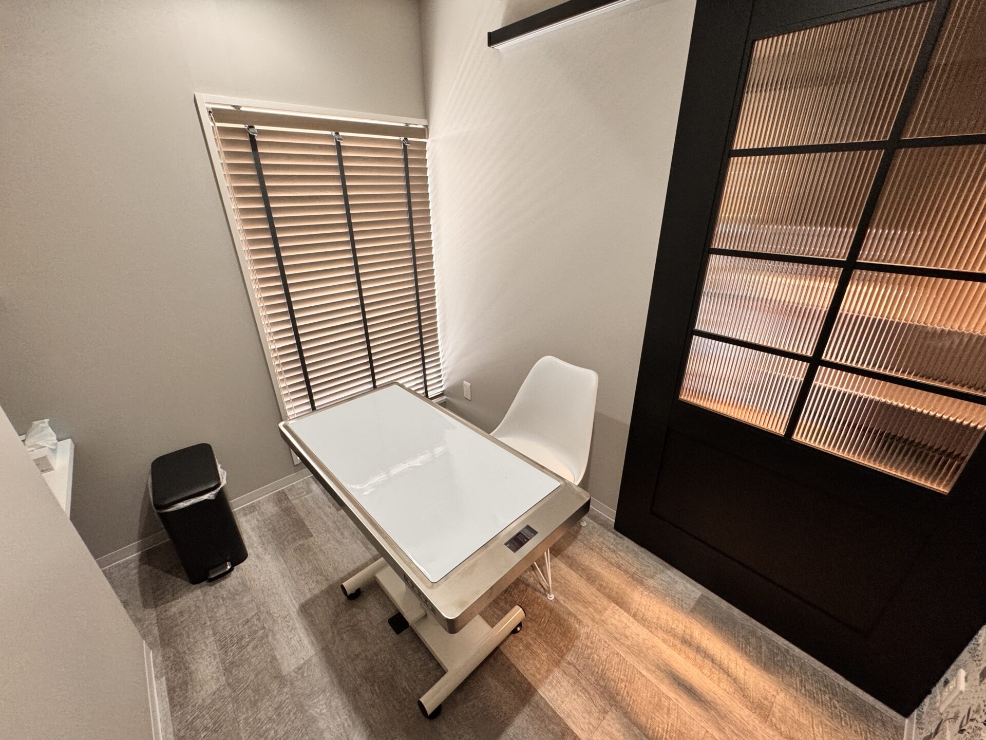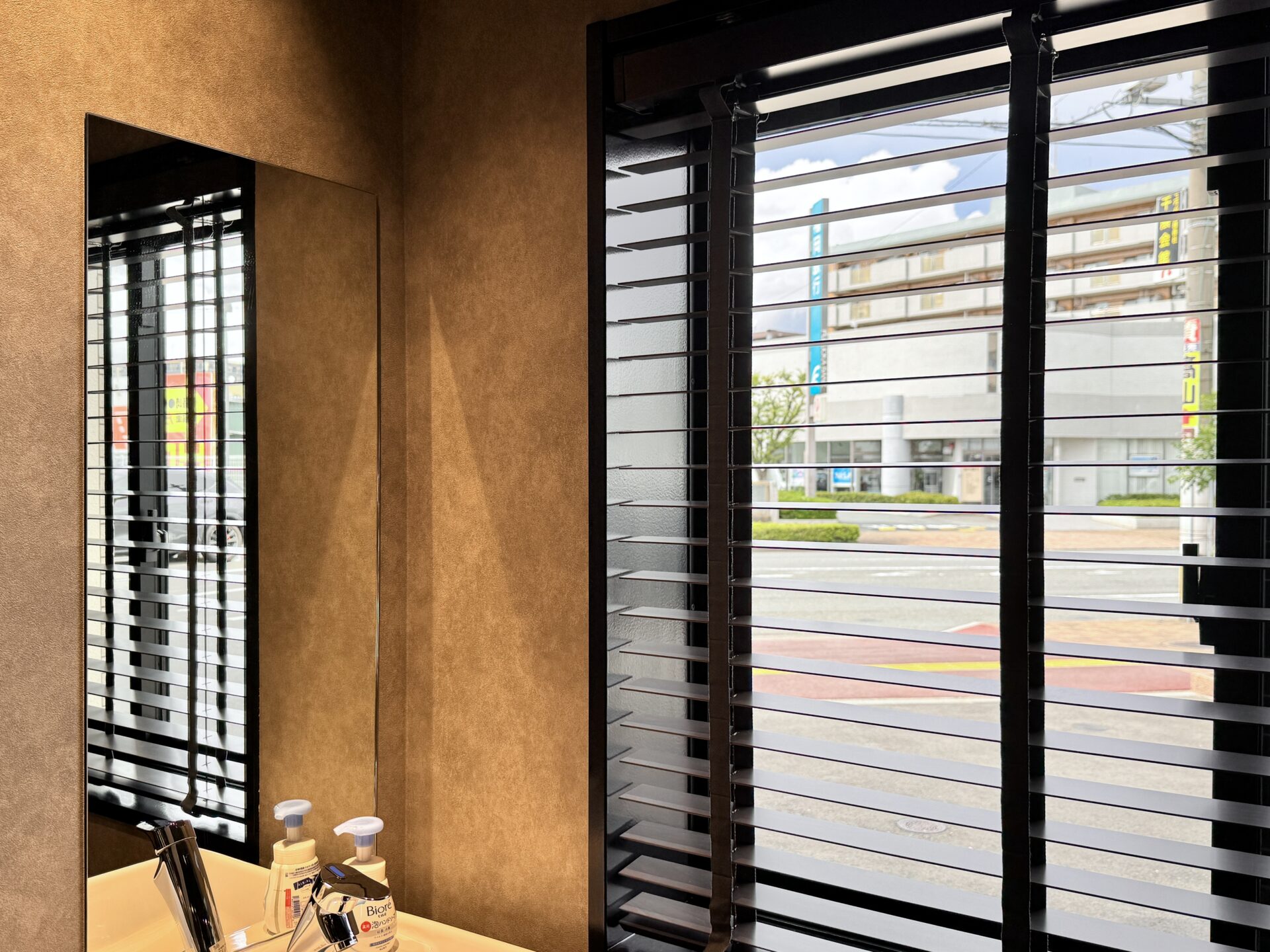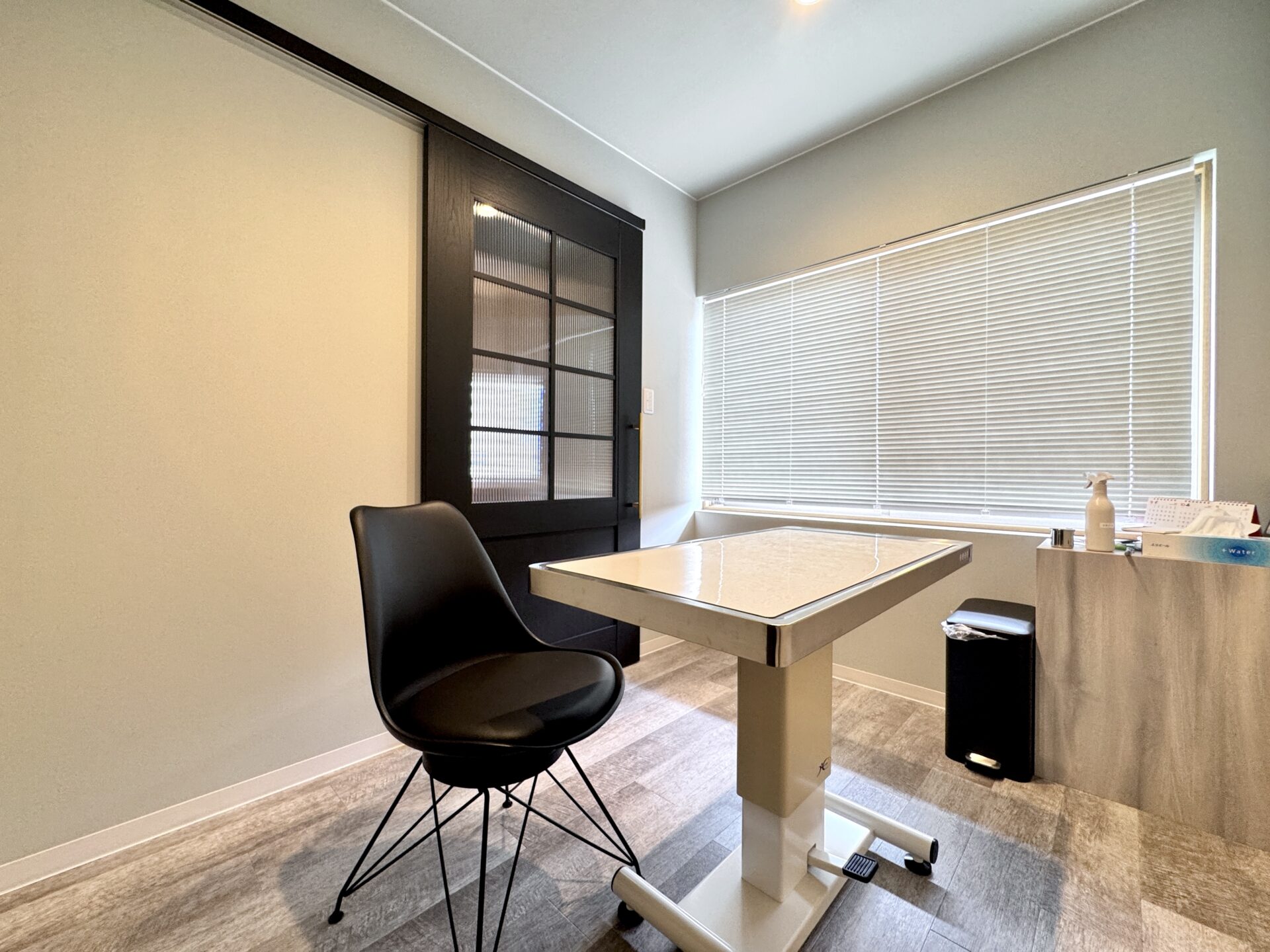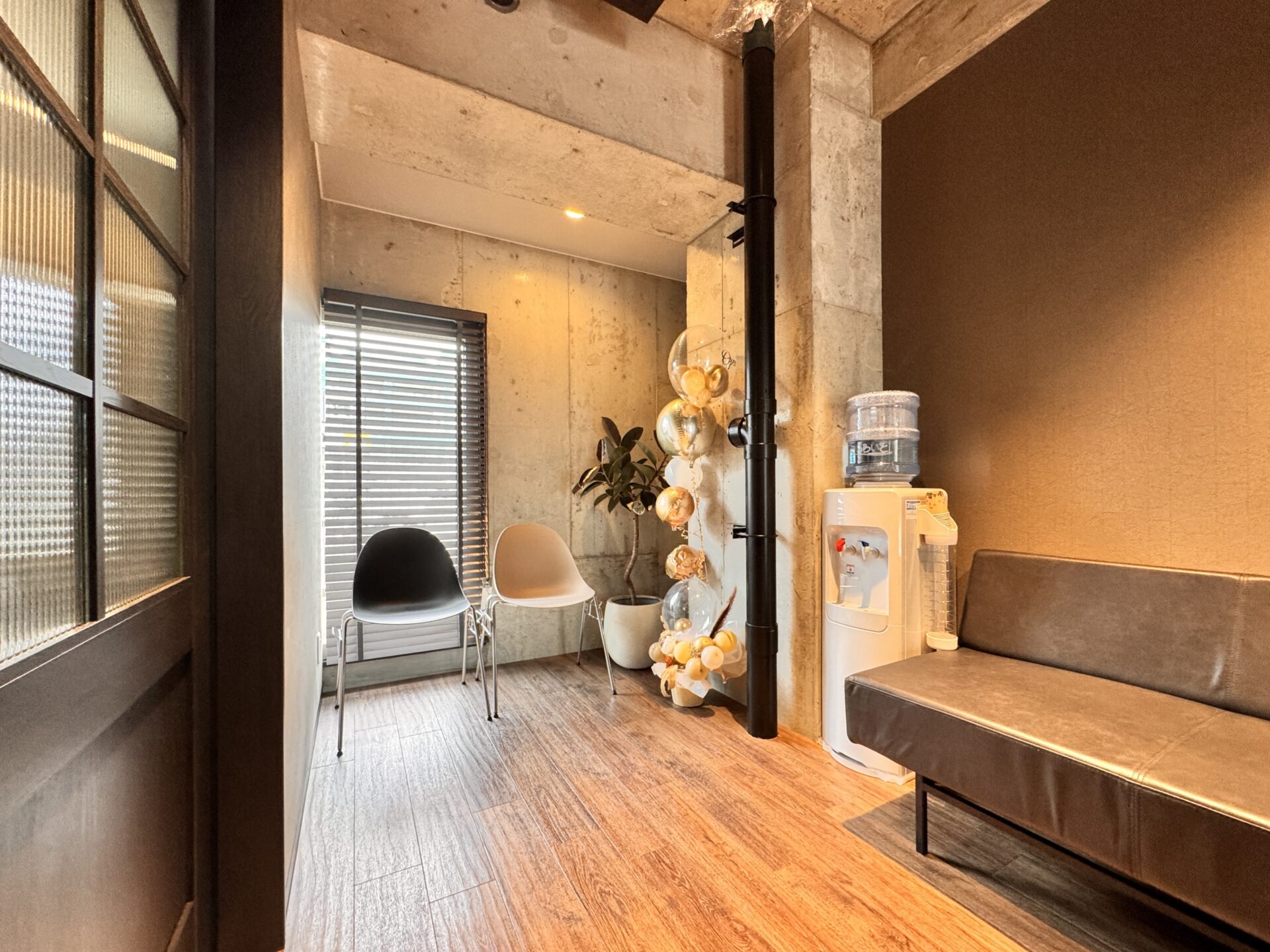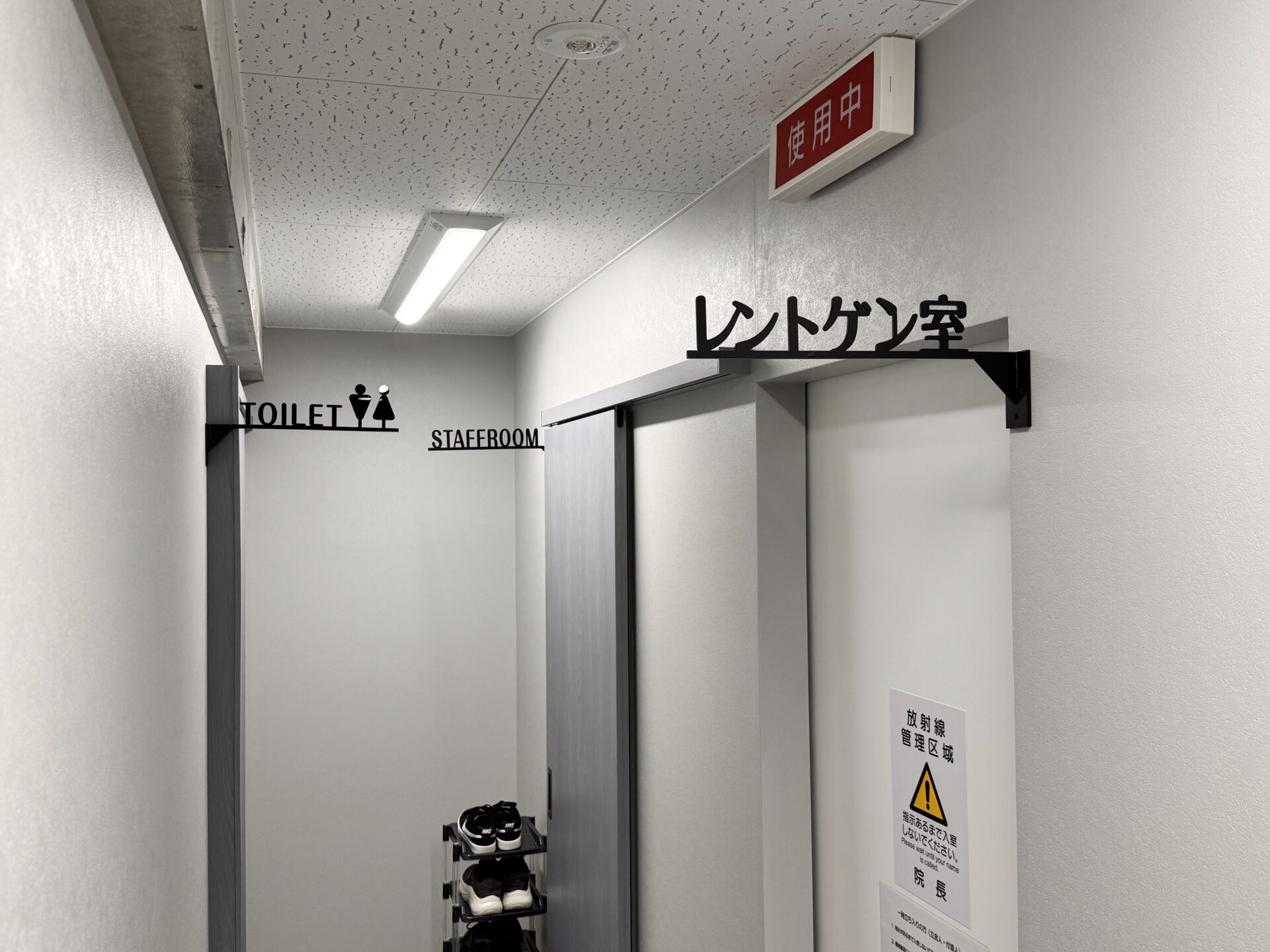 診察室の扉はブラック色の框戸になっており、ウェイティングの空間引き締めるオシャレなデザインです。