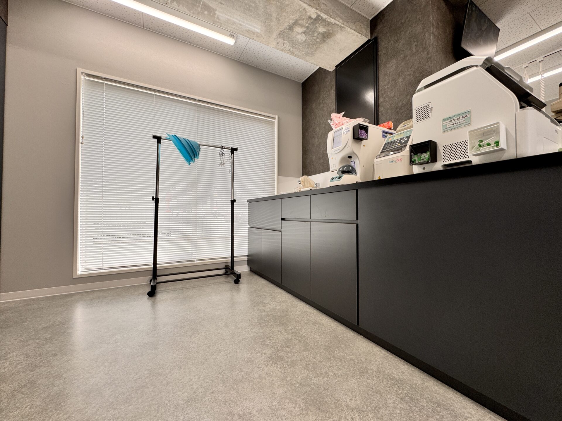 処置室同様、耐薬品性の床材・壁紙を用いています。