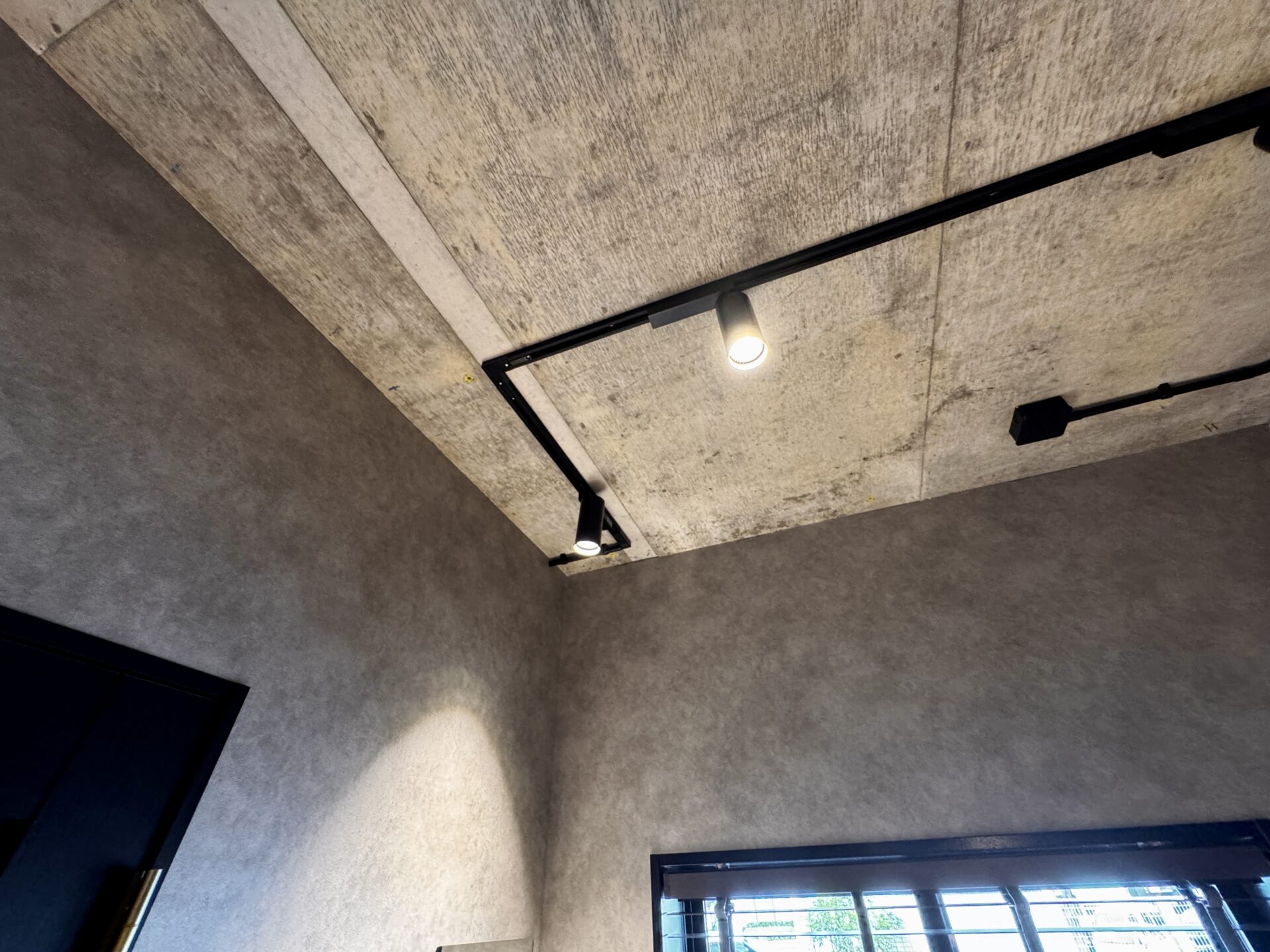 全体的にグレートーンでまとめ、ブラックをアクセントにしたインダストリアルな空間にまとめました。