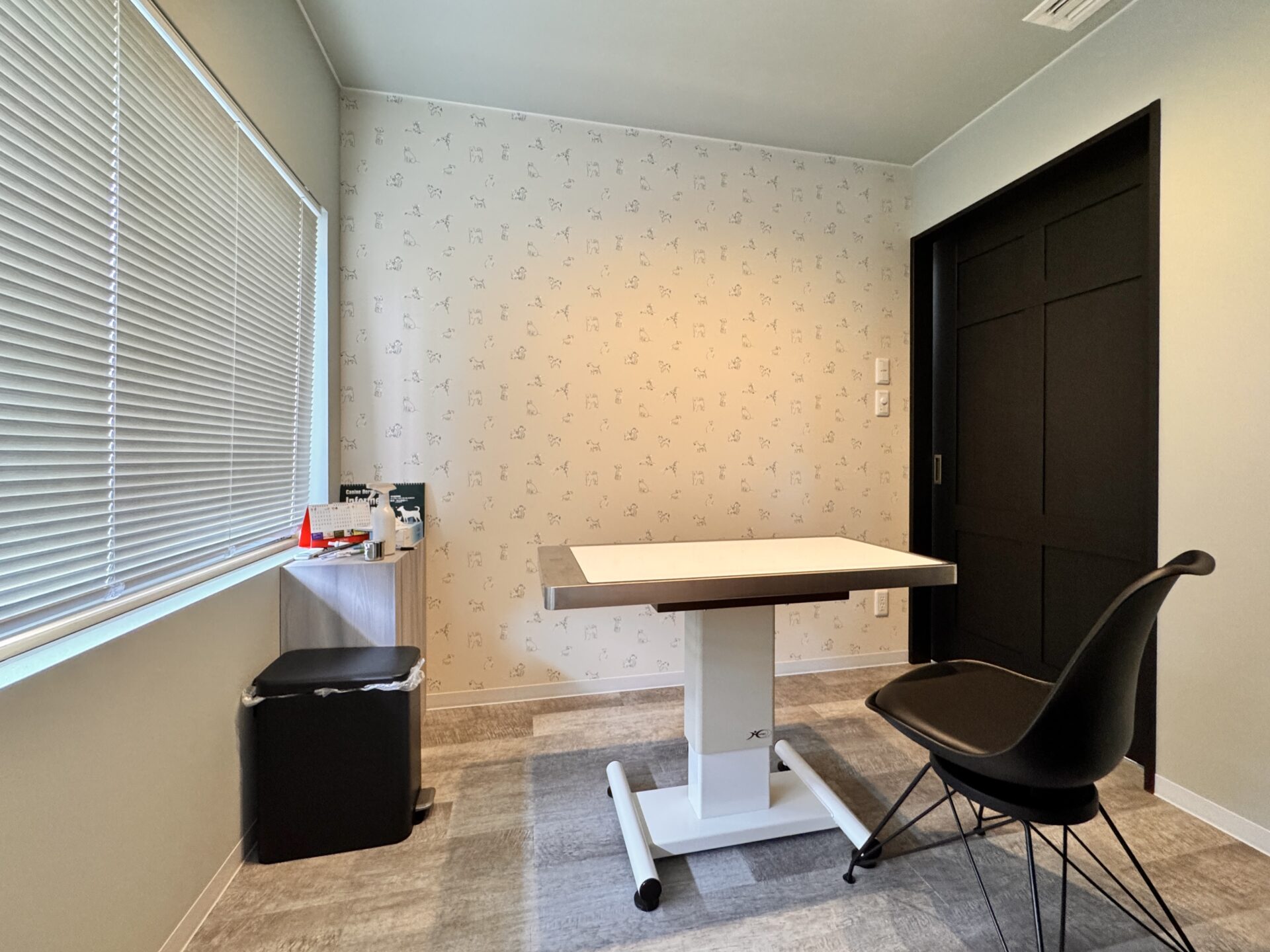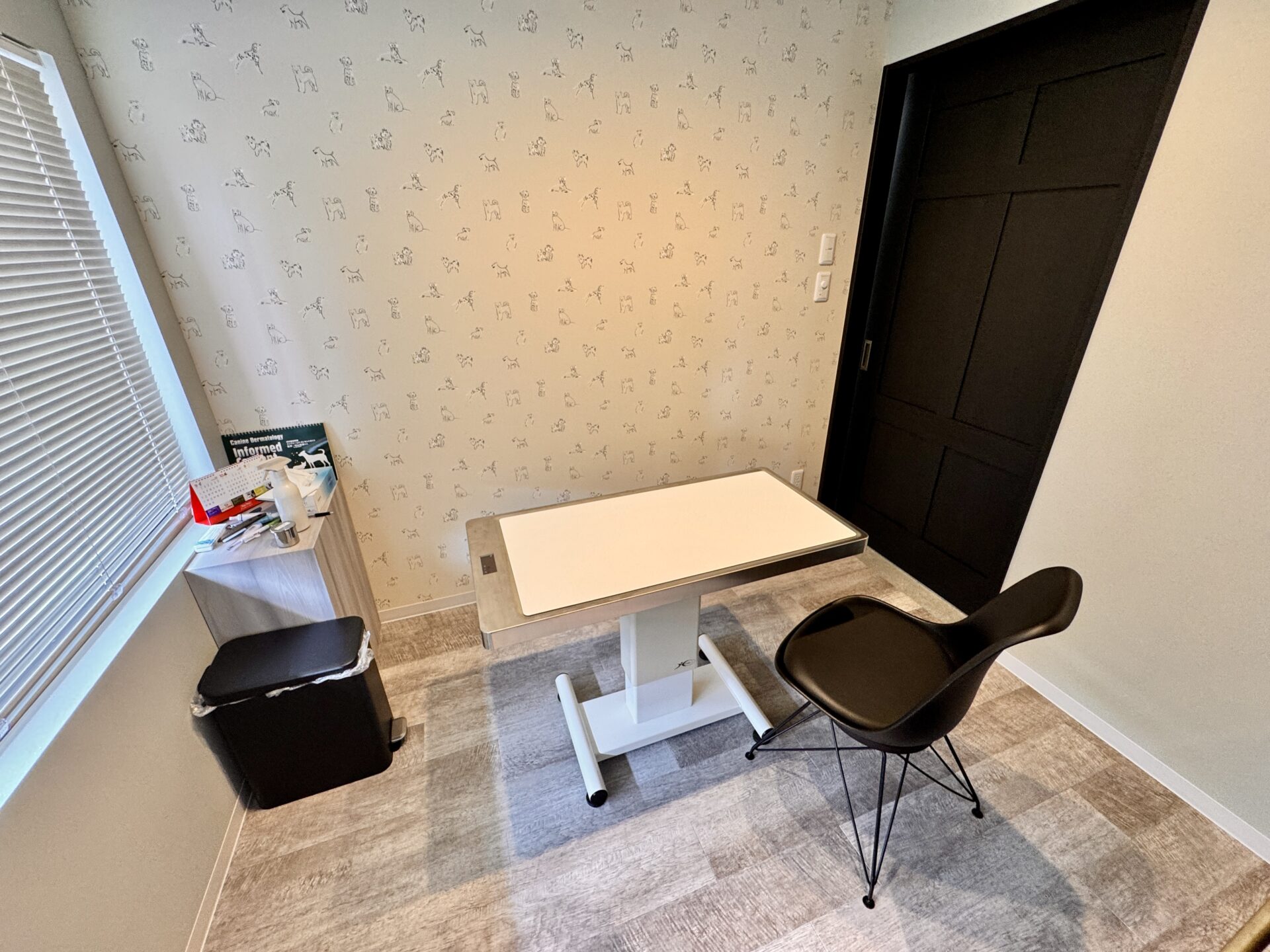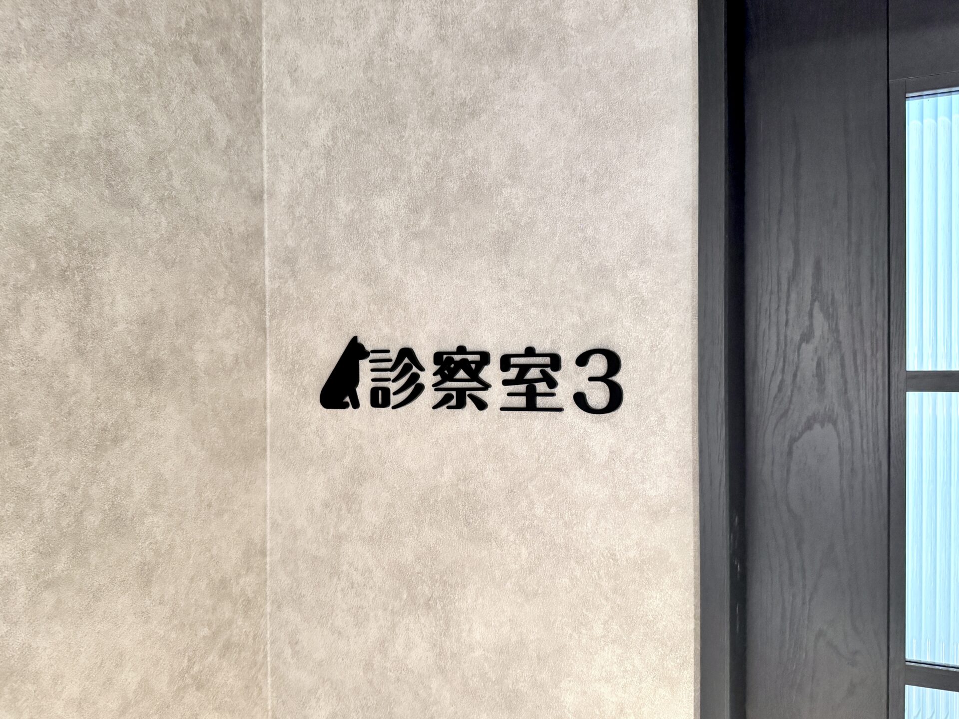 診察室1には猫ちゃん柄のアクセントクロス、診察室3にはわんちゃん柄のアクセントクロスを用いて差別化しました。