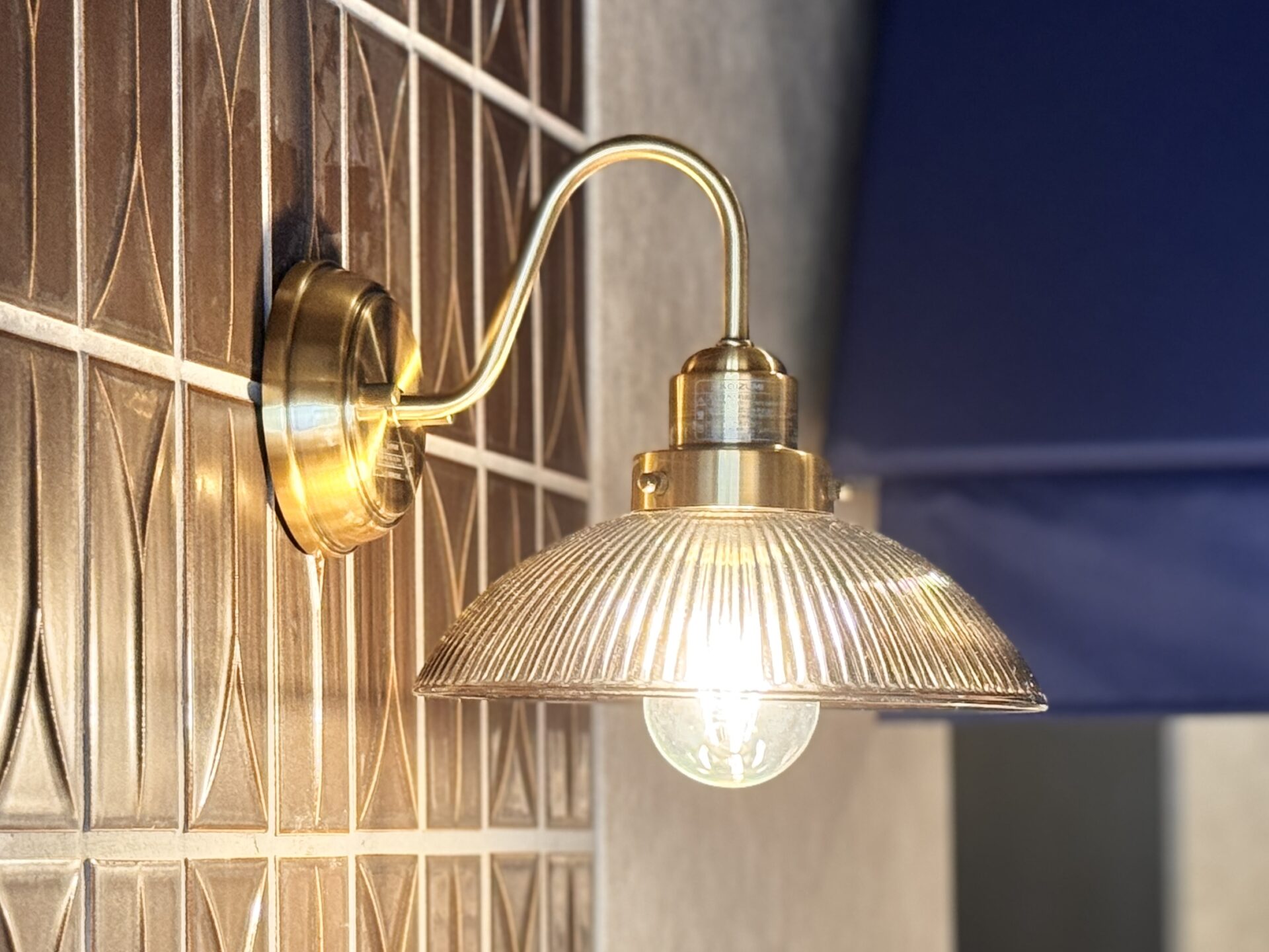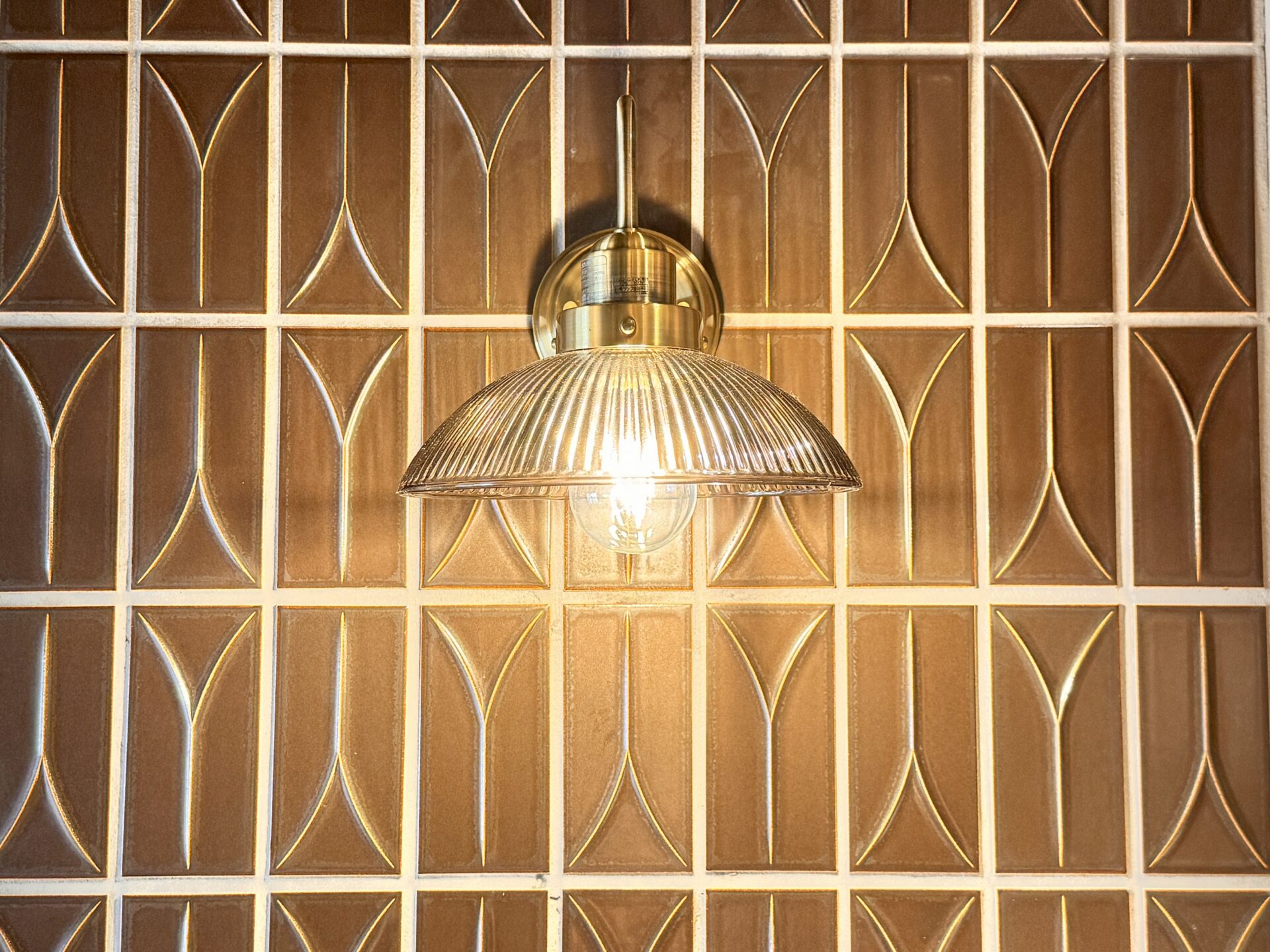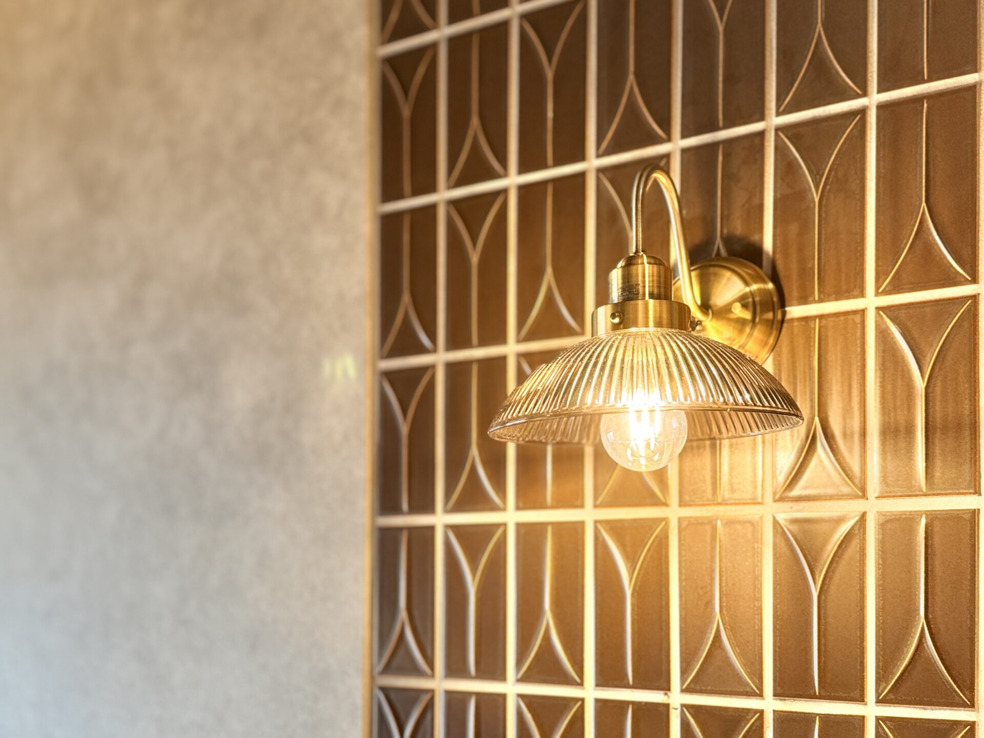タイルとブラケットライトを用いたオシャレな壁にしました。