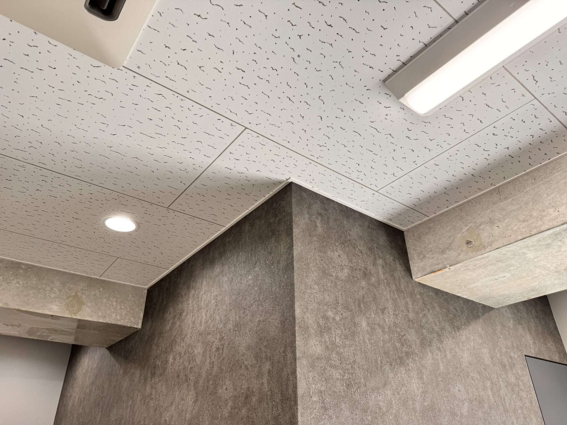 スタッフルームでは室内での飲食が伴うため、天井クロスに消臭機能のあるものを用いています。