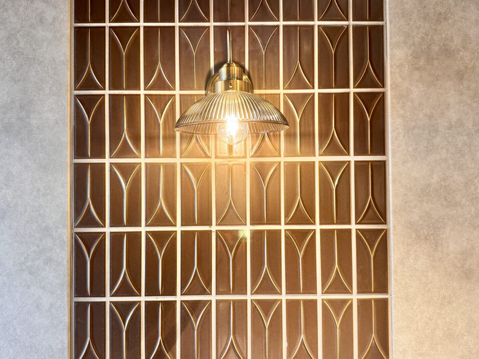 タイルの凹凸に光が当たることで高級感があり、雰囲気のあるデザインになっています。